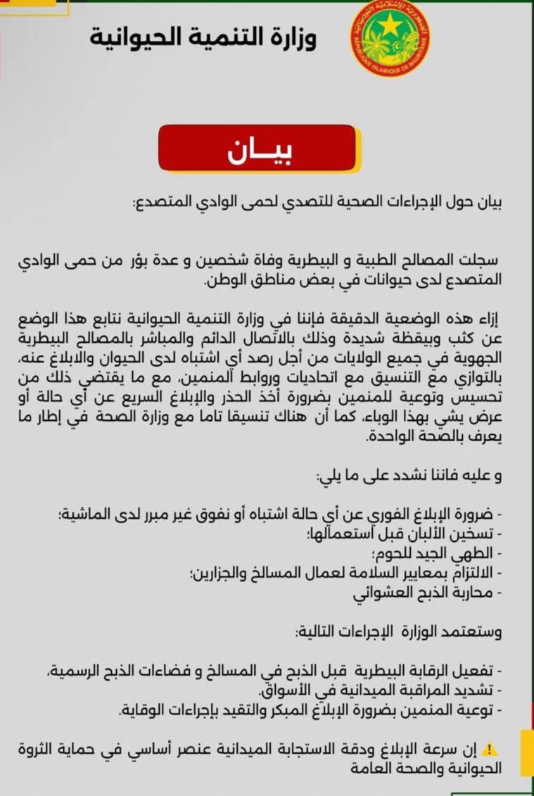 استقبلت مصلحة الحالات المستعجلة بمركز الاستطباب الجهوي في روصو، يوم أمس الجمعة، مواطنا قادما من إحدى دول الجوار، كان يعاني من أعراض حمى نزيفية متقدمة. وقد تم فورا عزله بالمستشفى واتخاذ الإجراءات الاحترازية، كما تم سحب عينة منه وإرسالها إلى المعهد الوطني للبحوث في مجال الصحة العمومية لإجراء التحاليل اللازمة، التي أكدت إصابته بحمى الوادي المتصدع.