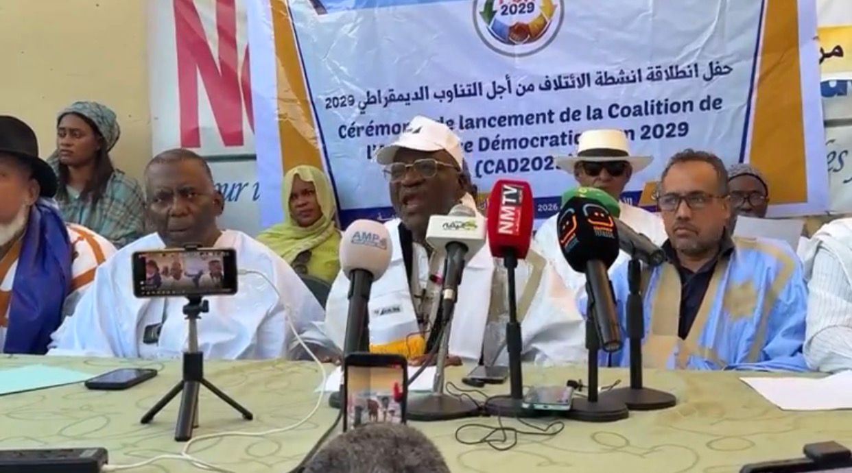 أعلنت مجموعة من الأحزاب السياسية والمنظمات الحقوقية، مساء أمس الأربعاء في نواكشوط، تأسيس إطار سياسي جديد يحمل اسم "ائتلاف التناوب الديمقراطي 2029" بهدف توحيد جهود القوى الديمقراطية والعمل على تحقيق تناوب سياسي في أفق الانتخابات الرئاسية المقررة عام 2029.
